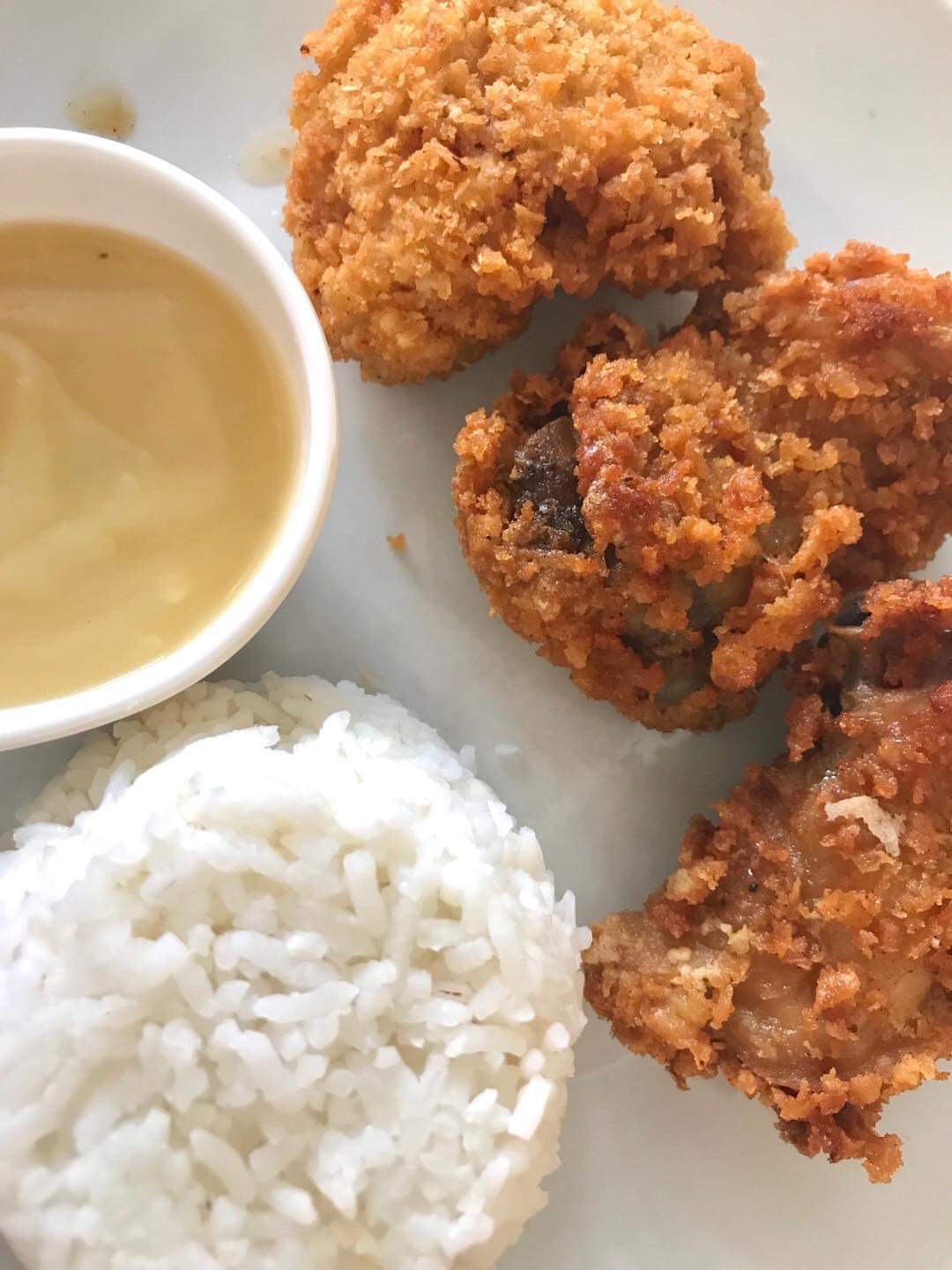 For P140 you will get 3 fried chicken, one rice, a gravy (refillable) and an iced tea.